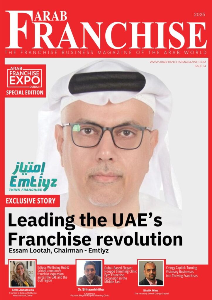 دبي، الإمارات العربية المتحدة – أكتوبر 2025 — تَصدر رائد الأعمال الإماراتي البارز عصام لوتاه، رئيس مجلس إدارة امتياز (Emtiyz)، غلاف العدد الخاص لعام 2025 من مجلة عرب فرانشايز (Arab Franchise)، وذلك احتفاءً بدوره المحوري في قيادة حركة الامتياز التجاري المتسارعة النمو في دولة الإمارات.